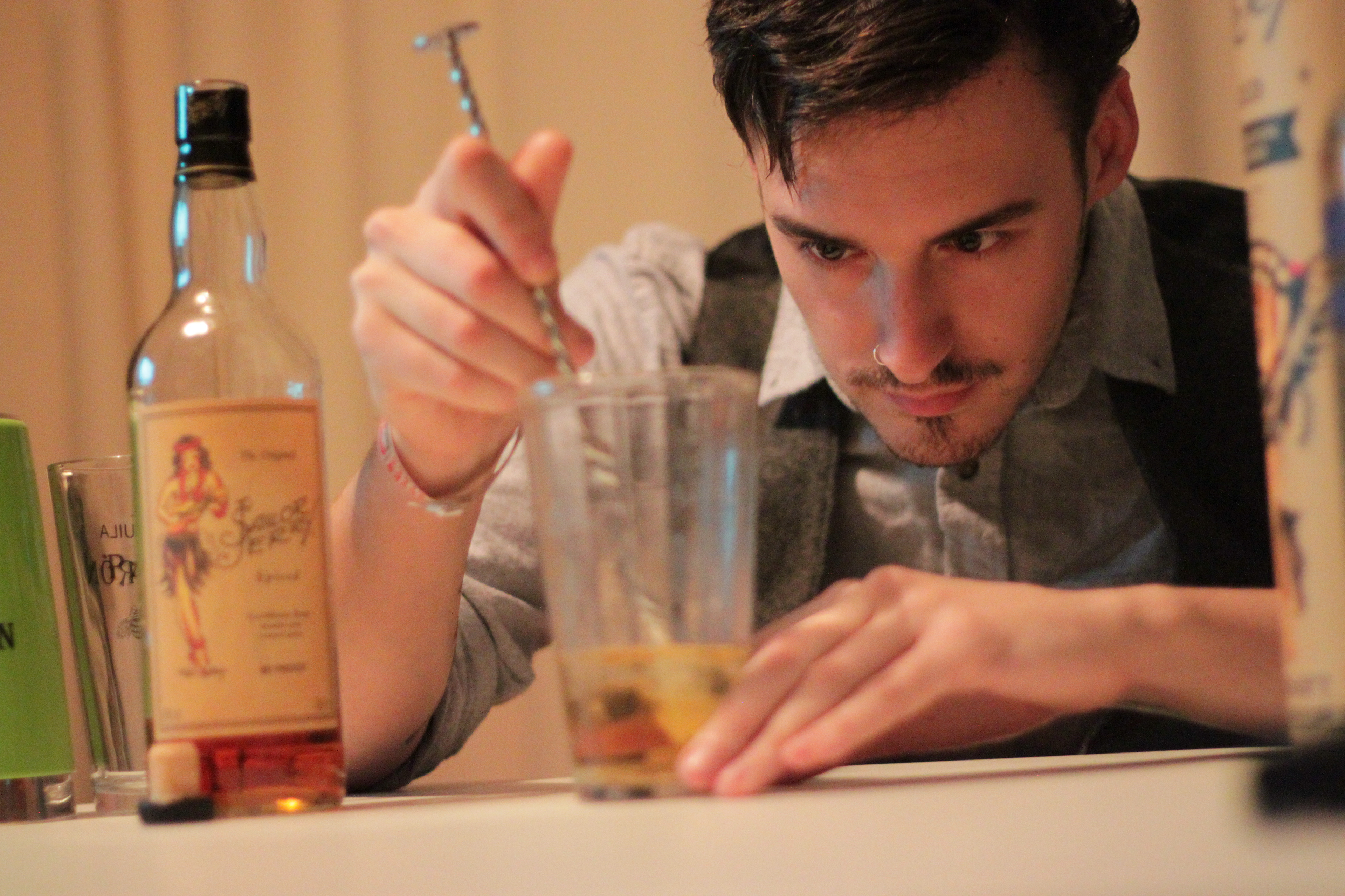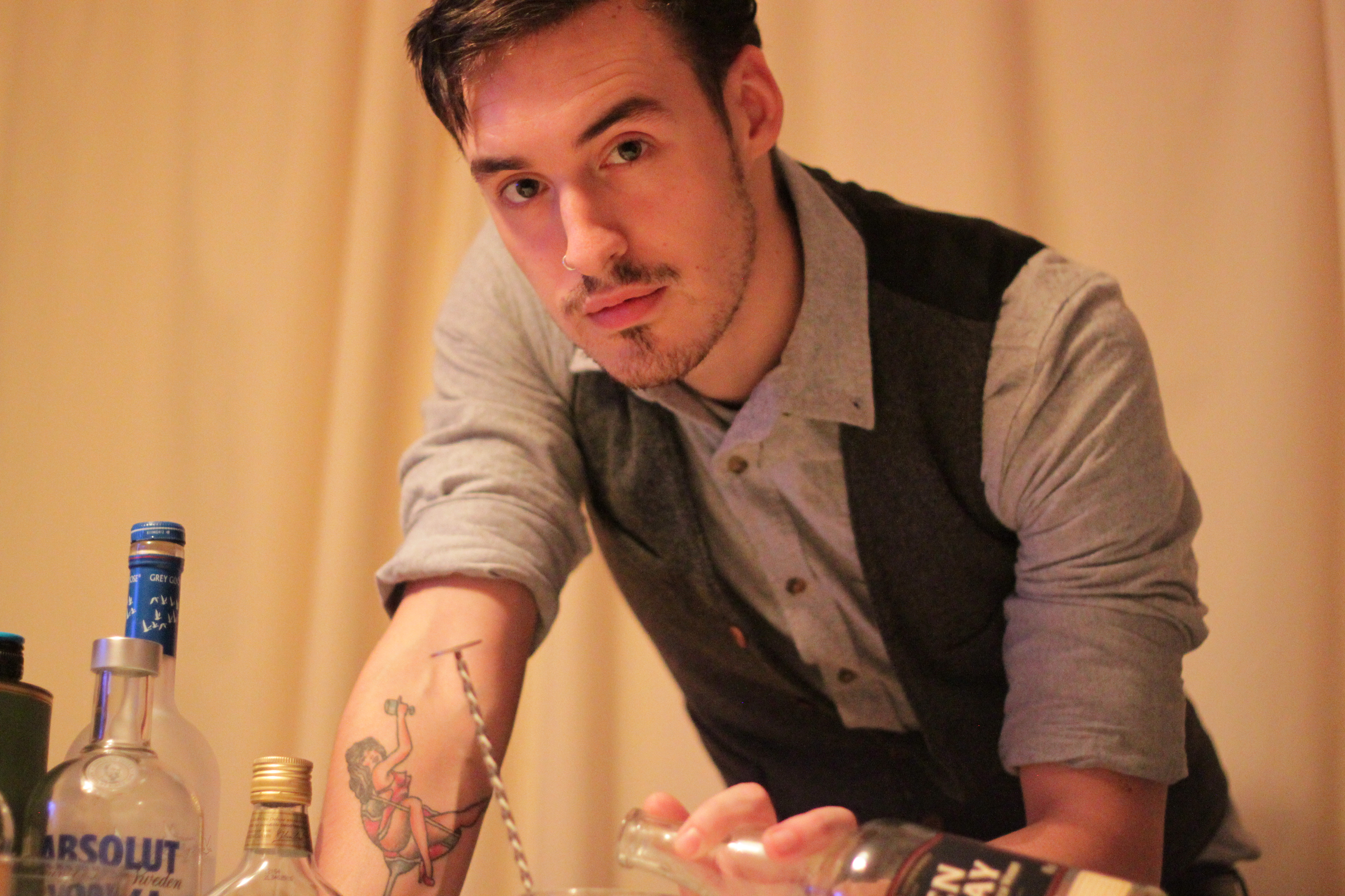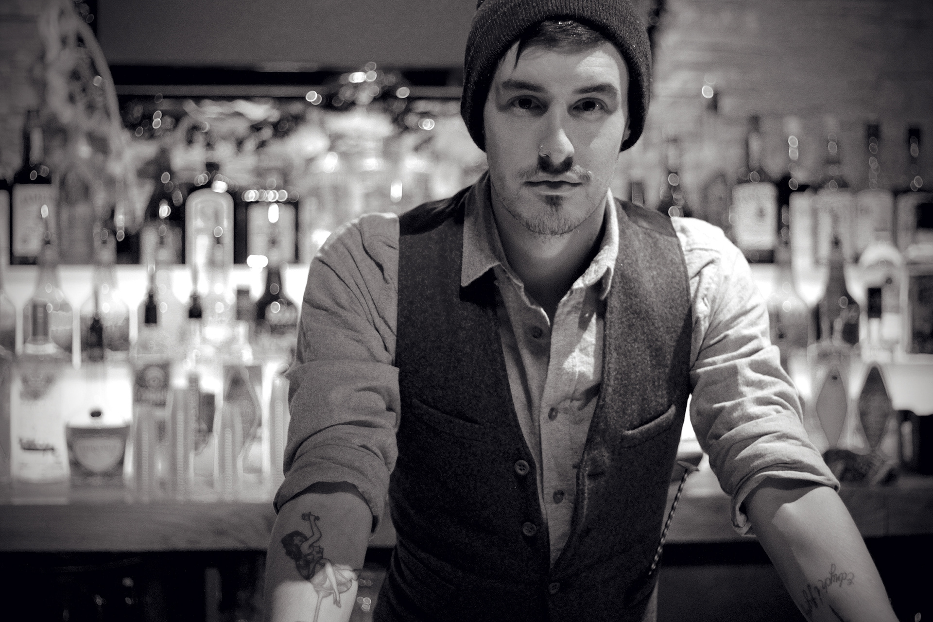 A series of promotional shots featuring cocktail bartender Joshua Powell.
